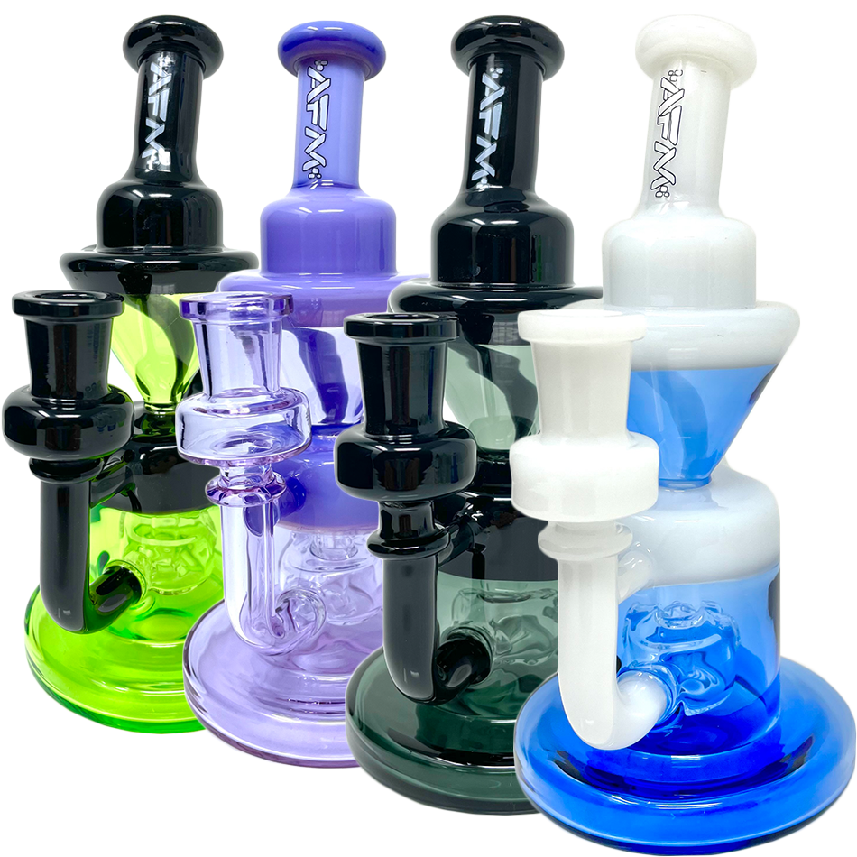 The 8″ Lilac Full Color Glass Recycler Dab Rig is an excellent choice for those who appreciate both aesthetics and functionality. The combination of the drain recycler, 4-hole perc, and full-color design ensures a smooth and enjoyable dabbing session, while the stemless joint and flared mouthpiece add to the overall sleek and comfortable experience. With the bowl included and a convenient 14mm female joint, this rig is ready to use and compatible with a wide range of accessories.