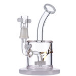 The compact Halo rig by Evolution may be only 6.75-inches tall, but it delivers big flavorful hits that are smooth and cool. Made of thick and sturdy high-quality borosilicate glass, this is a robust rig that’s supported by a stable round foot. The rig’s slightly bent mouthpiece makes it comfortable to use and the showerhead diffuser inside filters and smooths the smoke for gentle, harsh-free hits.
