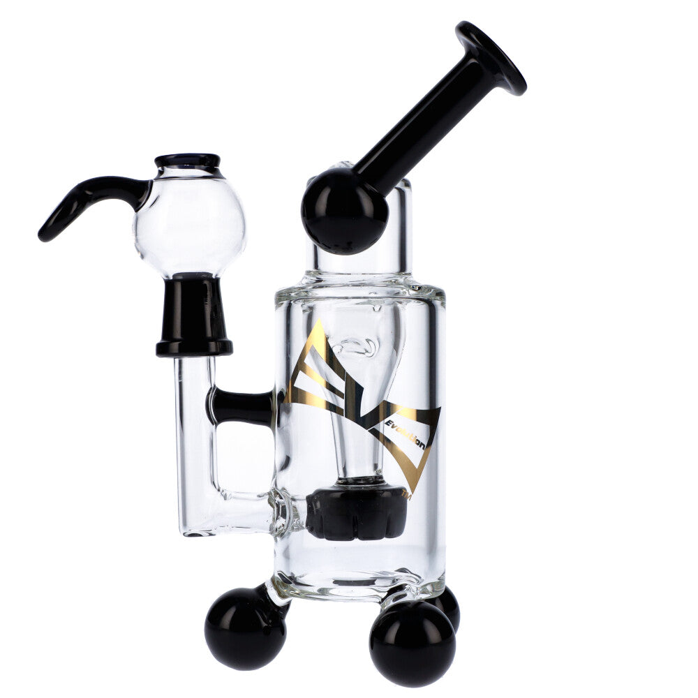 Seal the hatches and bolt the doors because the Tropical Storm Dab Rig by Evolution is coming! This unique dab rig sits on three spherical shaped feet and is equipped with a showerhead percolator for super filtration. The solid rig measures 18cm/7inches in height and is constructed from high-quality clear, and colored borosilicate glass. The Tropical Storm features a 14mm male joint, and includes a 14mm female vapor dome with roll stopper handle and a glass concentrate nail. The flared, sidecar mouthpiece enables you to smoke in a comfortable, more relaxed position and the ball-shaped feet provide important stability.