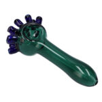 Ornamental tentacles protrude from the head of the bowl on this octopus spoon pipe. This piece measures 3.5 inches long and is made from high quality borosilicate glass. It features a carb hole on the left side of the bowl to help regulate the airflow, producing solid hits for you and your friends. Pass it around.