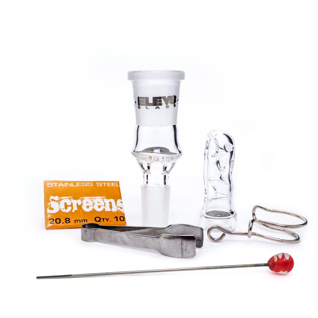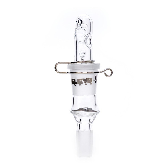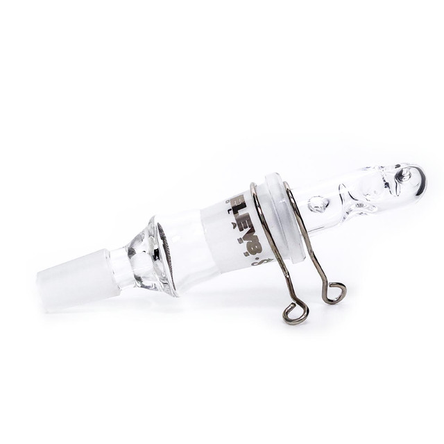 To use the ELEV8R, simply fill the rig adapter with your favorite herb and/or concentrates and then use the included Sick Clip to secure the ELEV8R Quartz Heater onto the end of the rig adapter. Heat the ELEV8R Quartz Heater with a torch for approximately 45 seconds (heating will vary depending on the strength of your torch) and then draw through the mouthpiece of your rig, water pipe, or bong to pull air through the ELEV8R Quartz Heater; the heater will heat the air before it passes through your herb and/or concentrates, providing a smooth convection vaporization that will evenly vape your product and provide a cool, flavorful hit of pure herbal vapor.